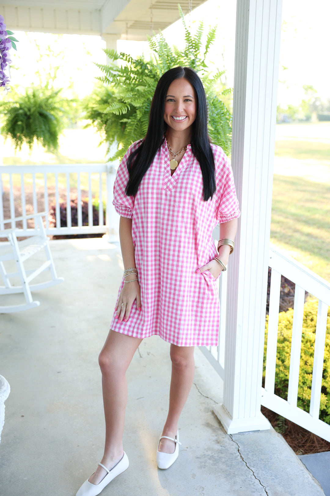 Southern Gingham Print Dress "Pink"