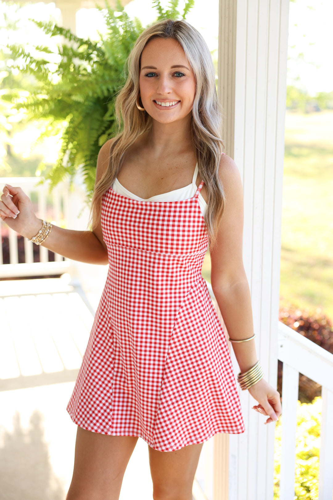 Gingham Print Double Layered Dress "Red"