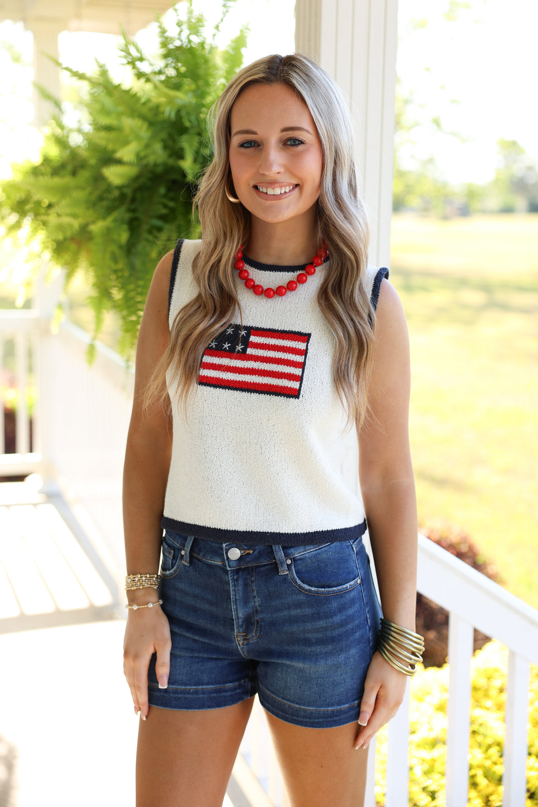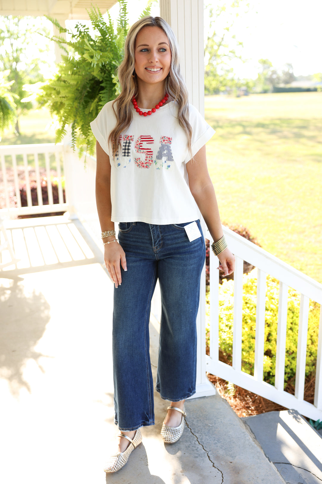 USA Floral Patchwork Top "White"