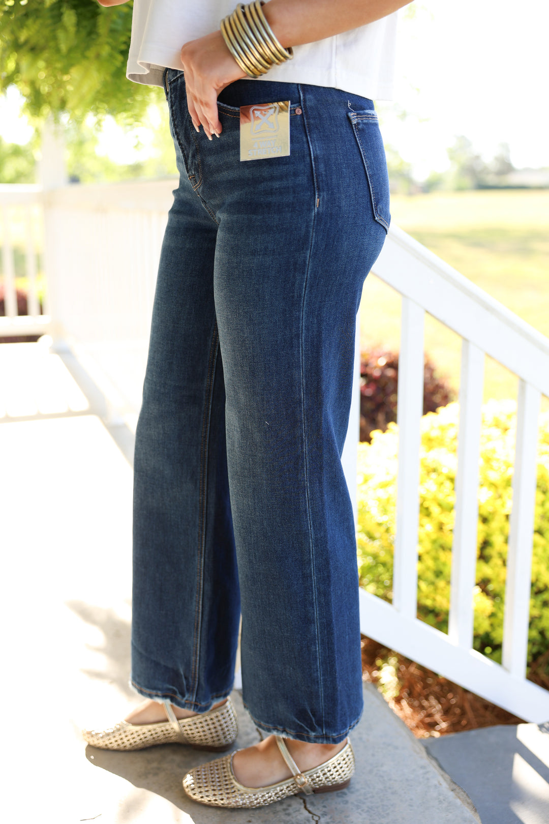 Risen - TC 4-Way Stretch High Rise Crop Wide Jeans "Dark"