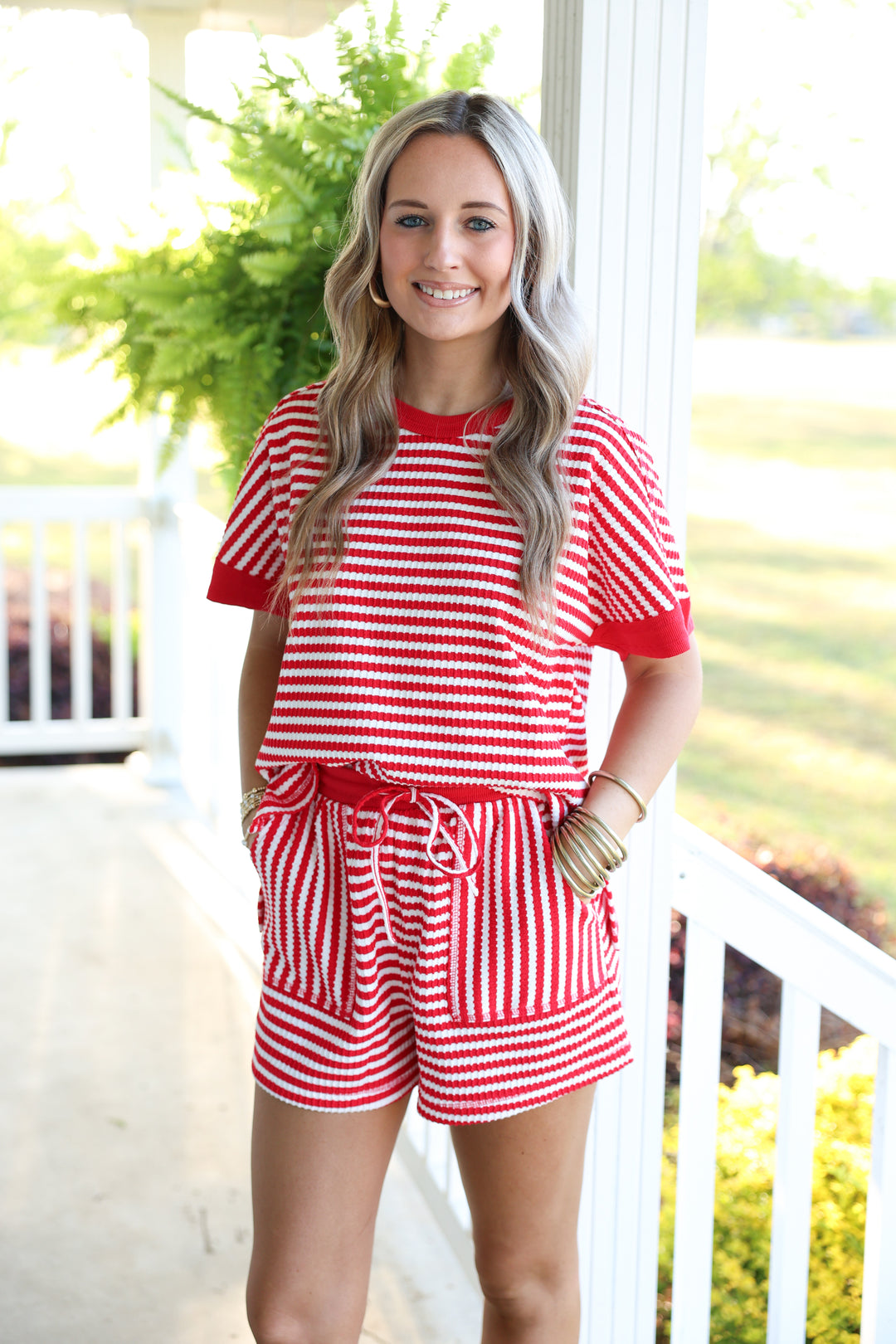 Striped Comfy Knit Top & Short Set "Red/White"