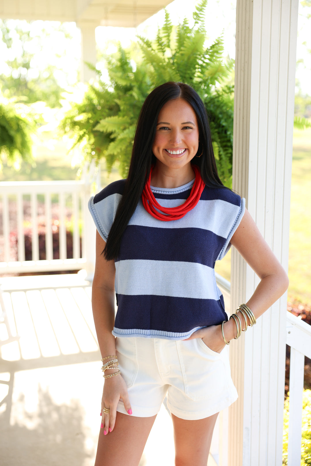 Striped Cap Sleeve Top "Navy"