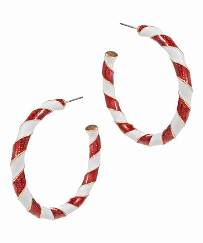 Twisted Christmas Color Enamel Hoops "White/Red"