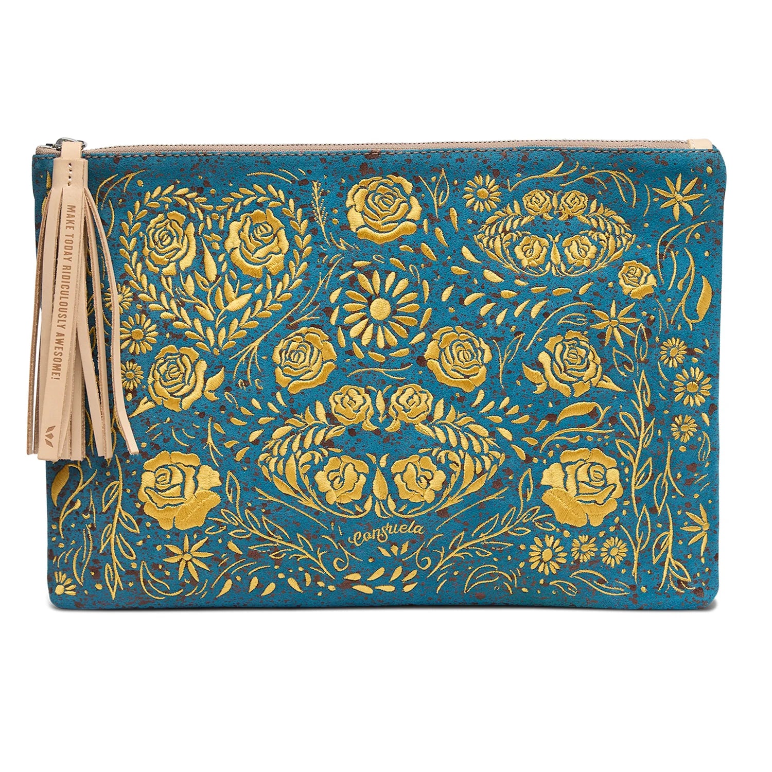 • Embroidered floral on Nilo suede with bronze metallic flecks exterior