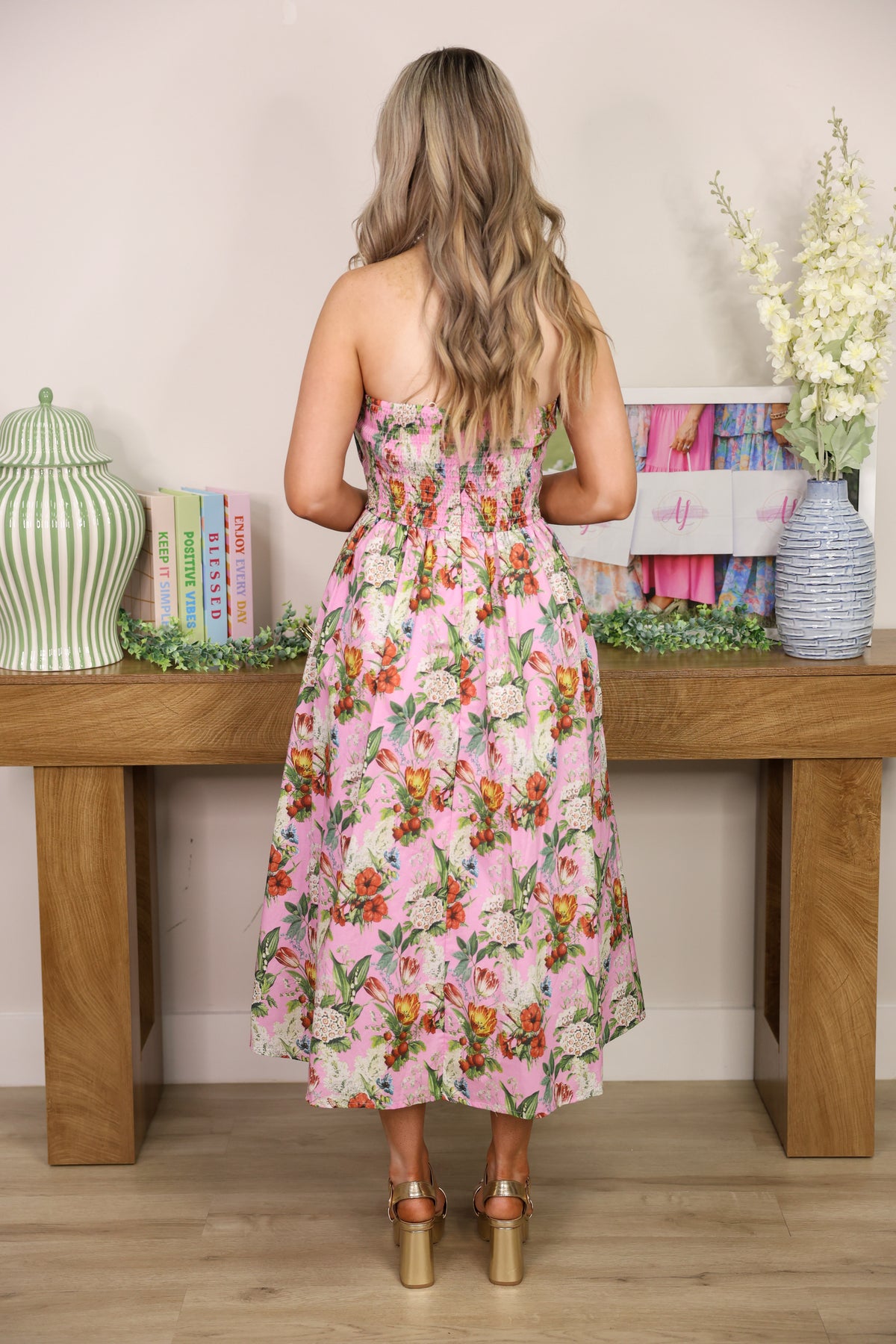 Embrace effortless spring style with this charming strapless midi dress. Featuring a delicate printed design that captures the season's fresh aesthetic, it's the perfect piece for garden parties, brunch dates, or casual outings. The strapless neckline offers a flirty silhouette while the midi length keeps things sophisticated and versatile. Pair it with sneakers for a relaxed vibe or dress it up with heels—this pretty print works beautifully either way.