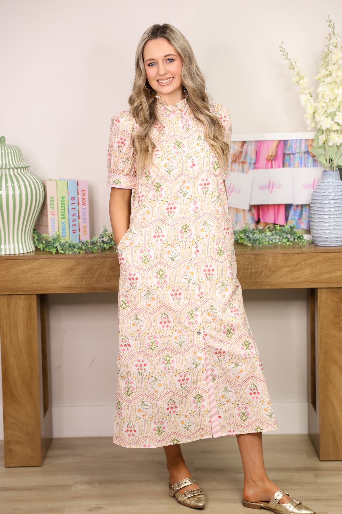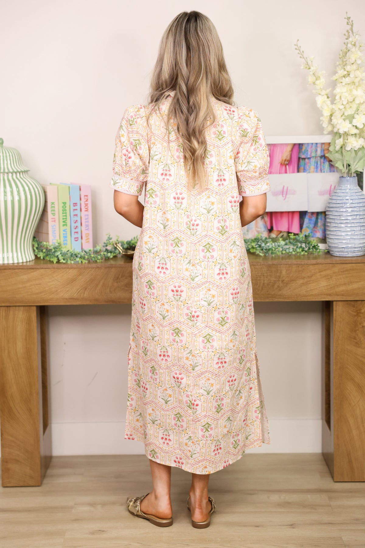 Tea Garden Floral Midi Dress "Pink"