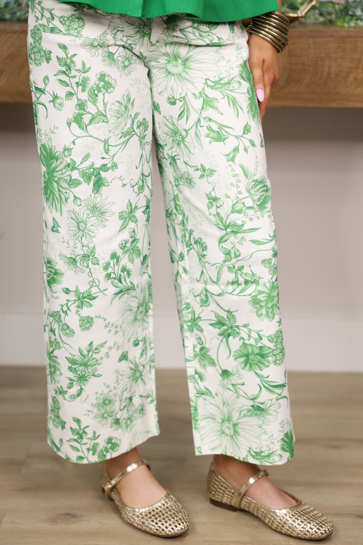 Flirty Floral Print Wide Leg Pants "Green"