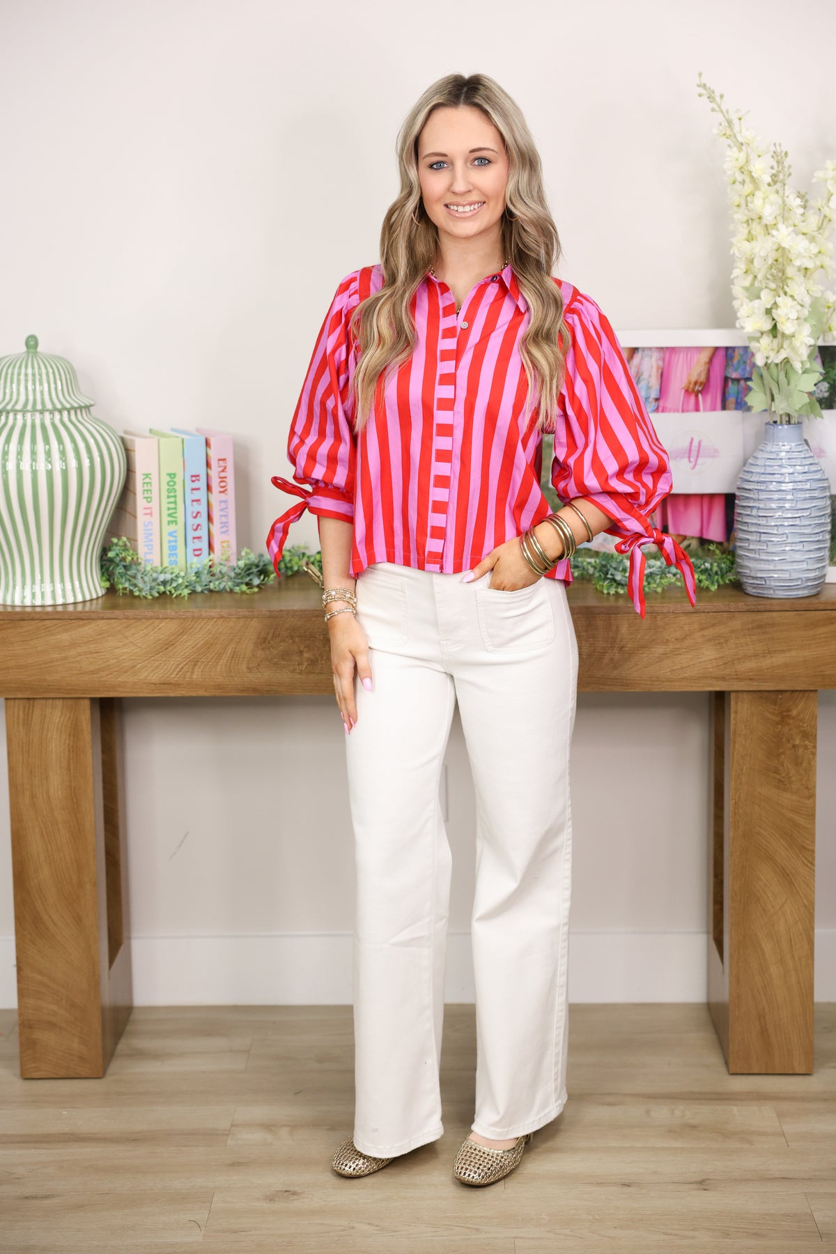 Brighten your wardrobe with this cheerful striped top in vibrant red! Perfect for sunny days and feel-good moments, this playful piece features bold stripes that add movement and personality to your look.