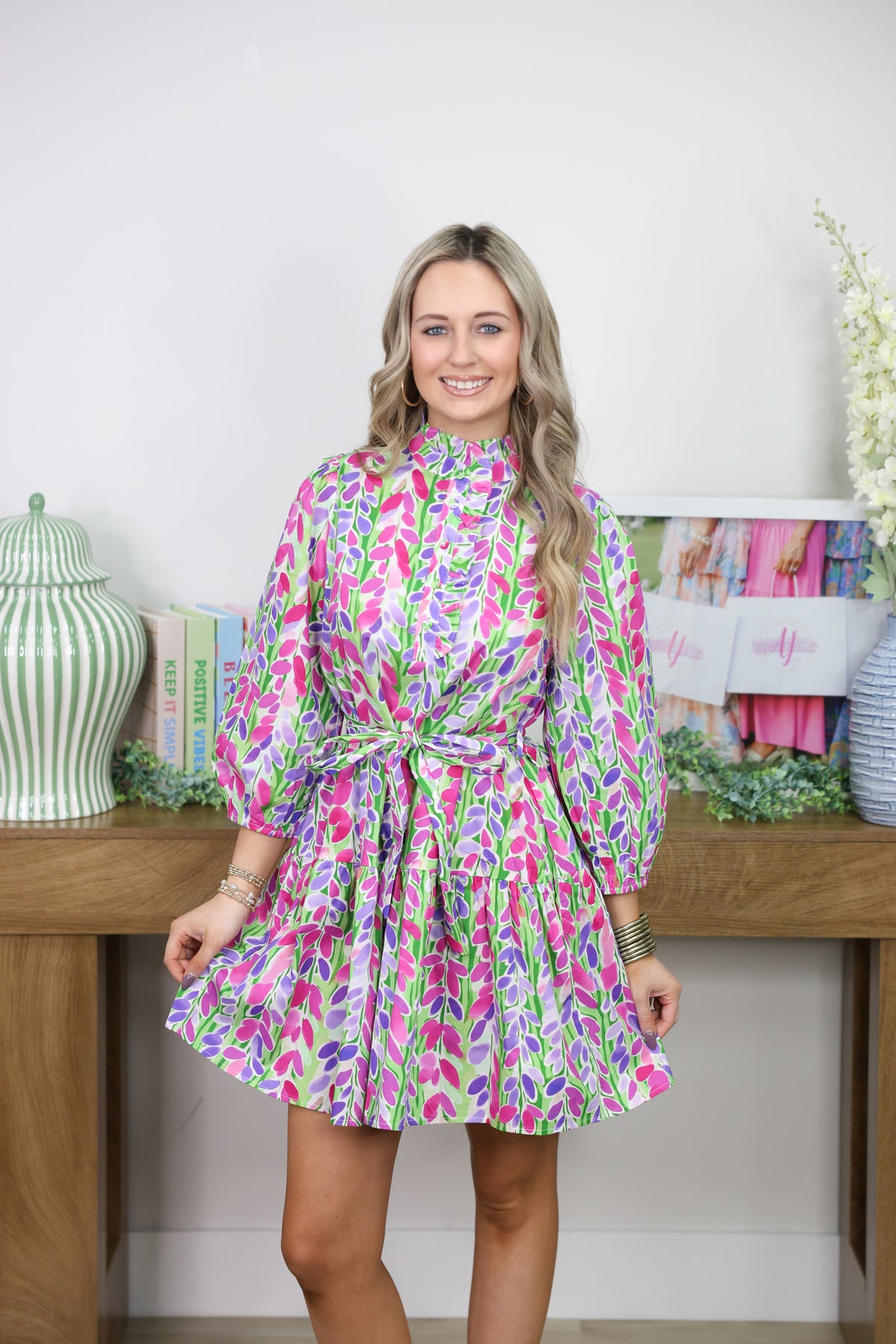Bloom into style with this charming floral printed mini dress that's perfect for any occasion. Featuring long sleeves for versatile layering and a chic front tie detail that lets you customize your fit, this dress brings effortless elegance with a playful twist. The vibrant green floral print adds a fresh, feminine touch that works beautifully from brunch to evening plans. Slip it on and let your personality shine through!