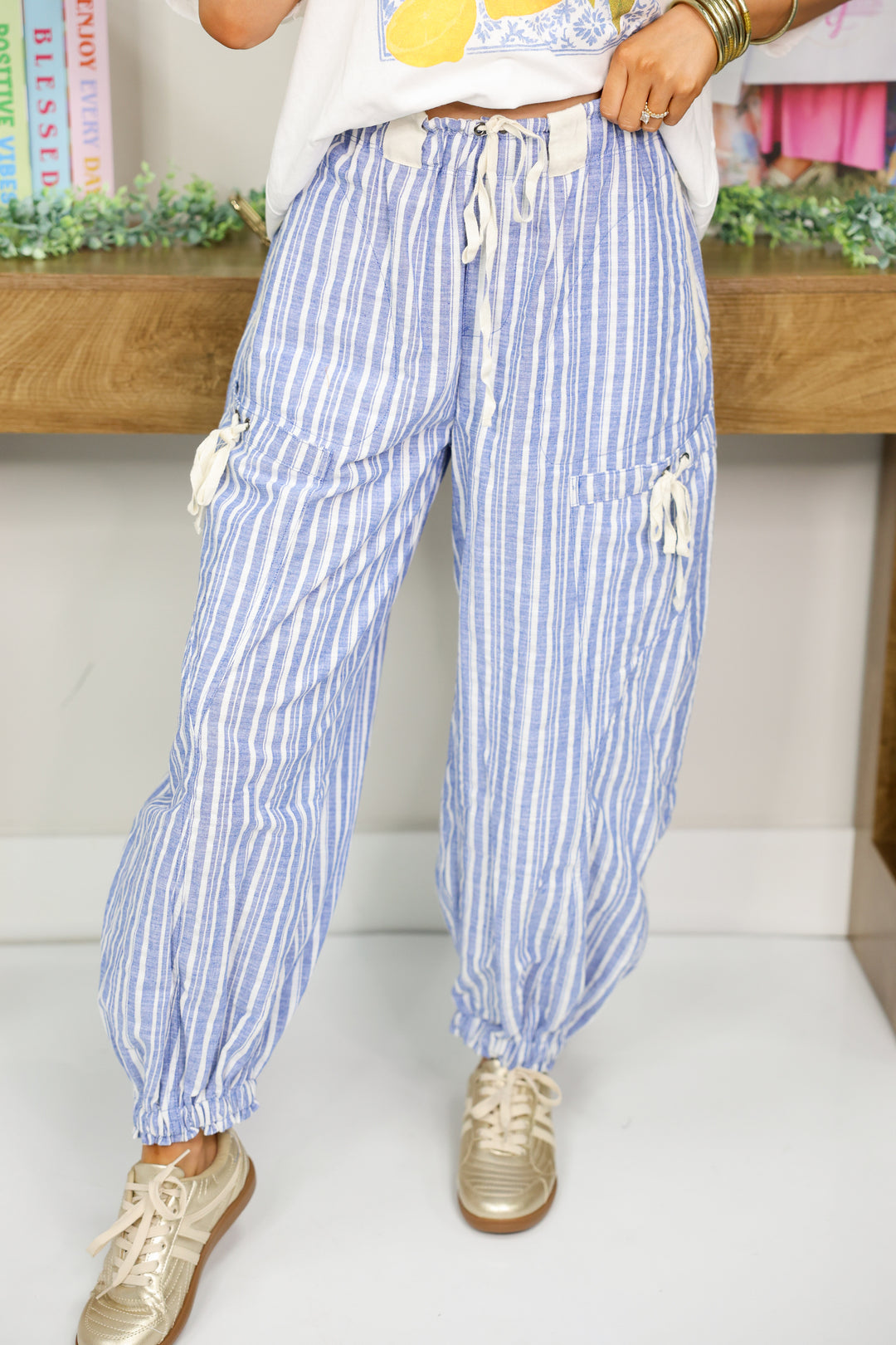 Soft Washed Striped Jogger Pants "Coastal Blue"