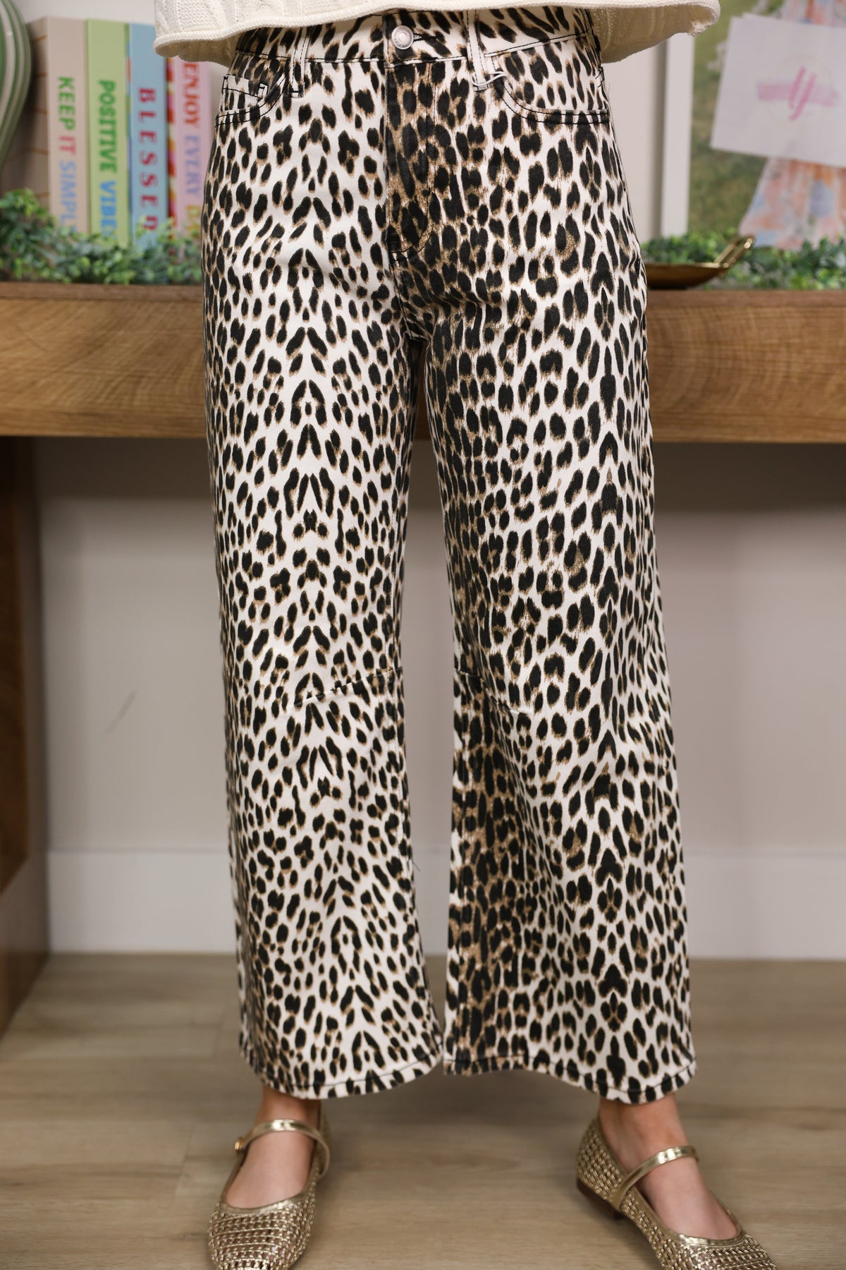 Roar into your wardrobe with these bold leopard-printed barrel leg jeans! Featuring a stretchy fabric that moves with you, these statement pants deliver wild style without sacrificing comfort. The relaxed barrel silhouette offers an effortlessly cool vibe, perfect for anyone ready to embrace their inner fashionista. Pair them with a solid tee or crop top to let the print take center stage, or dress them up for a night out. These jeans prove that animal print is always in season.