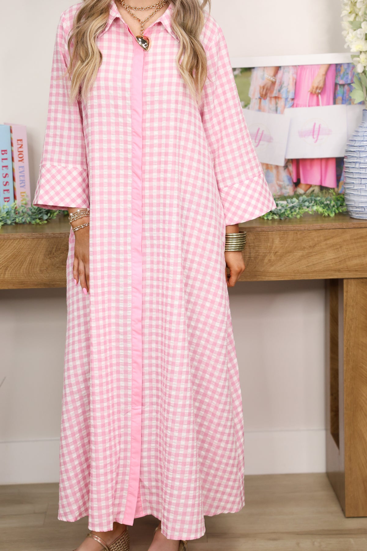 Embrace effortless charm in this adorable gingham printed dress that's all about comfort and style. Featuring sweet button details and a flowy, oversized silhouette, it's perfect for those days when you want to look put-together without trying too hard. The classic gingham pattern brings a playful, timeless vibe that pairs beautifully with sneakers or sandals. Whether you're running errands or meeting friends, this dress delivers that coveted relaxed-yet-polished look.