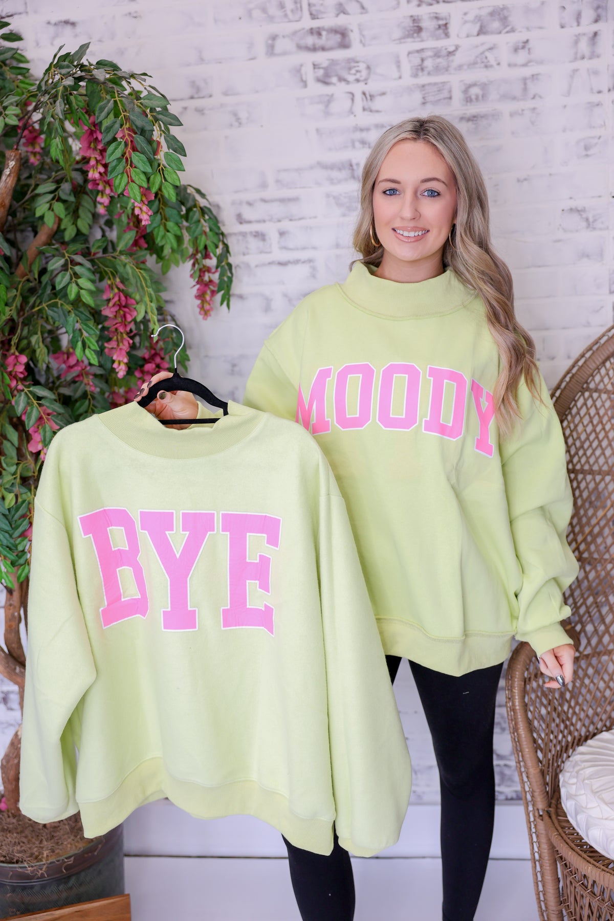 'MOODY & BYE' Reversible Mock Neck Sweatshirt "Lime/Pink"