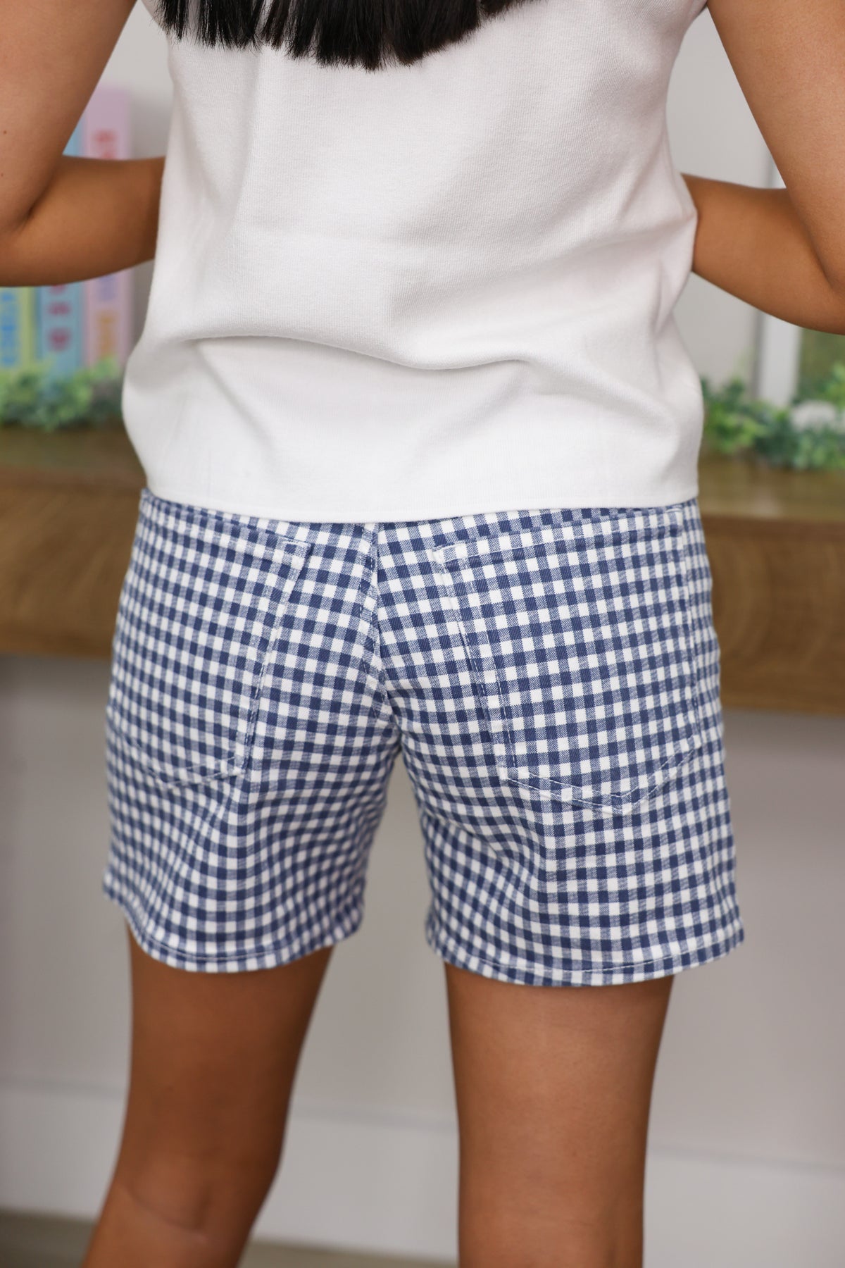 Navy Gingham Lightweight Shorts
