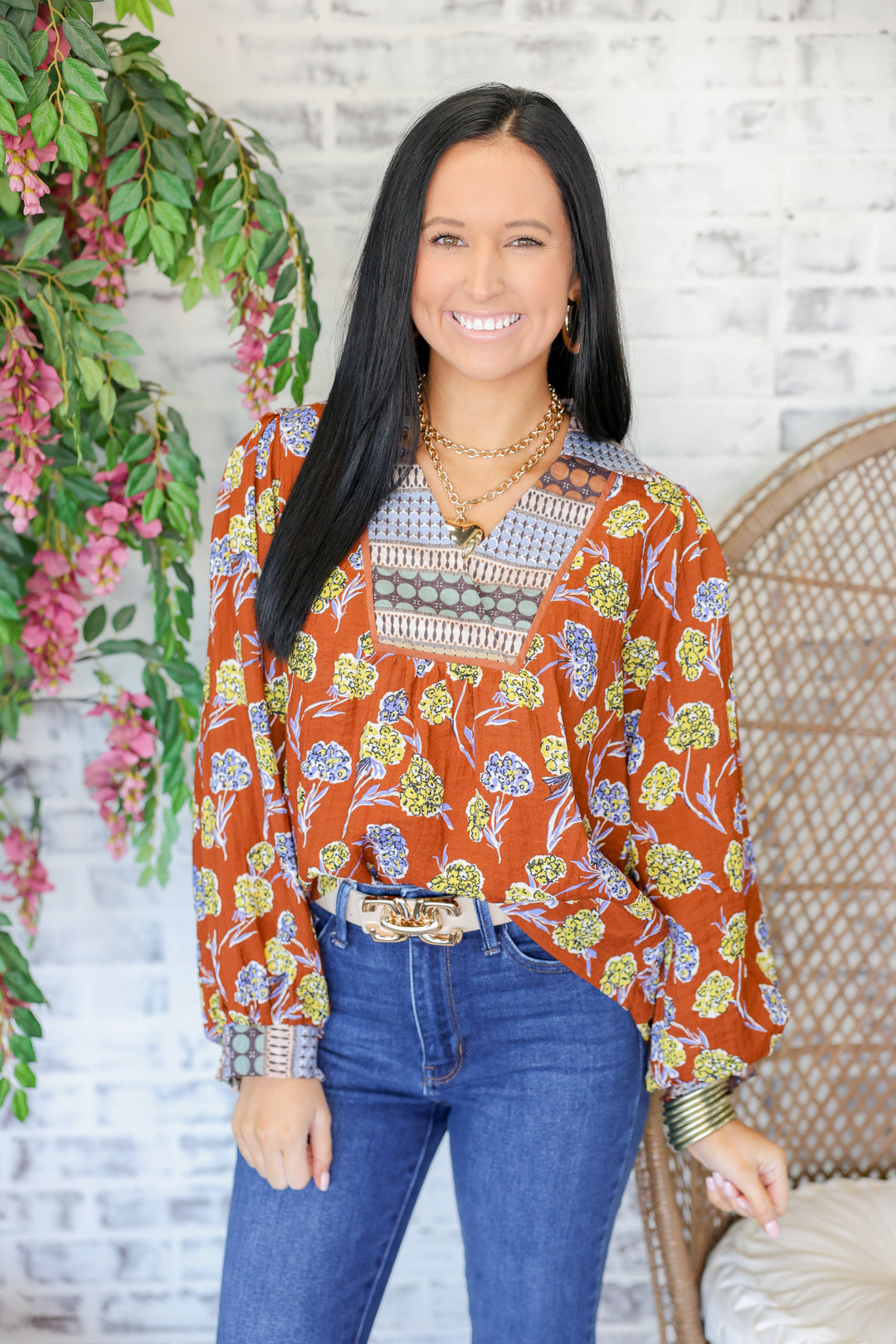 Latte Blossom 3/4 Bell Sleeve Sweater Top