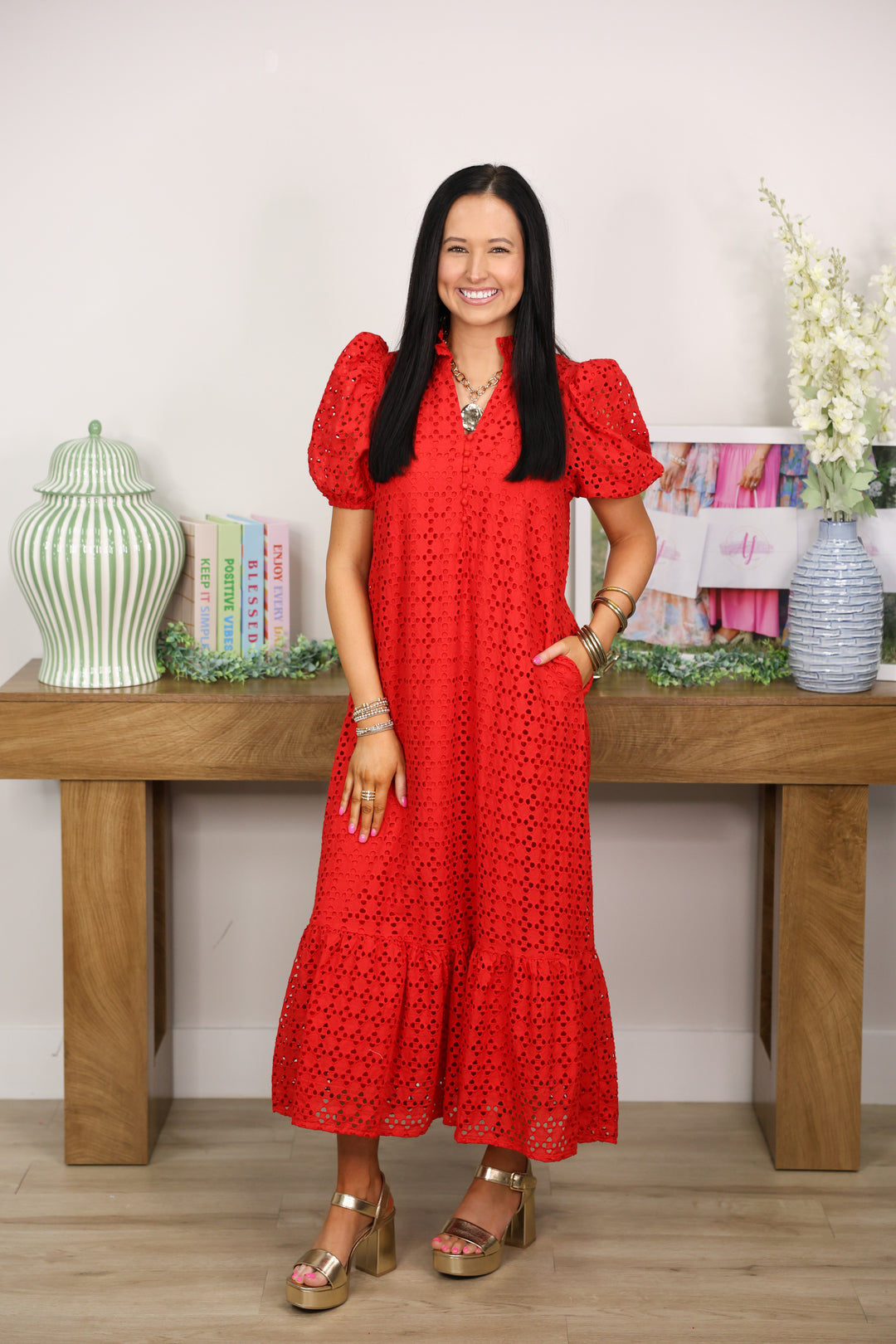 The Everlasting Eyelet Dress "Red"