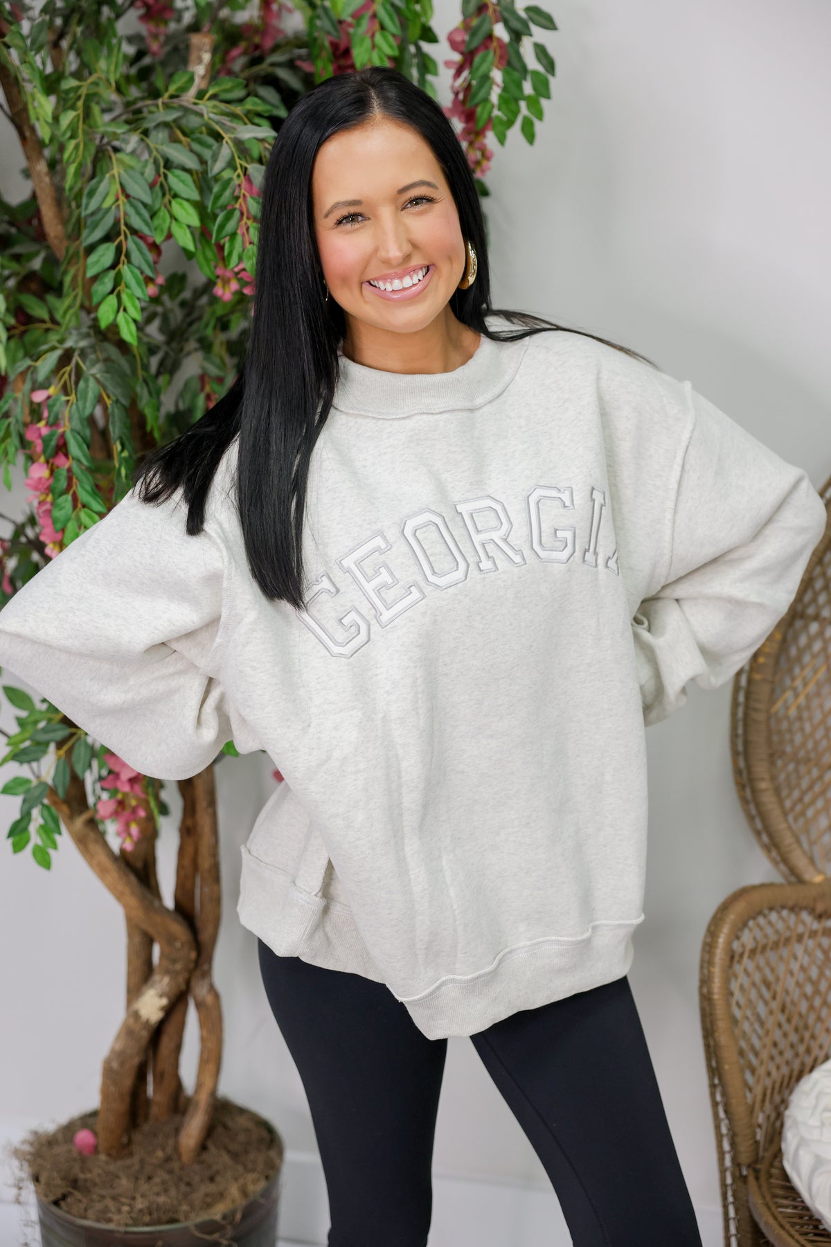 'Georgia' Embroidered Mock Neck Sweatshirt "Ash Grey"