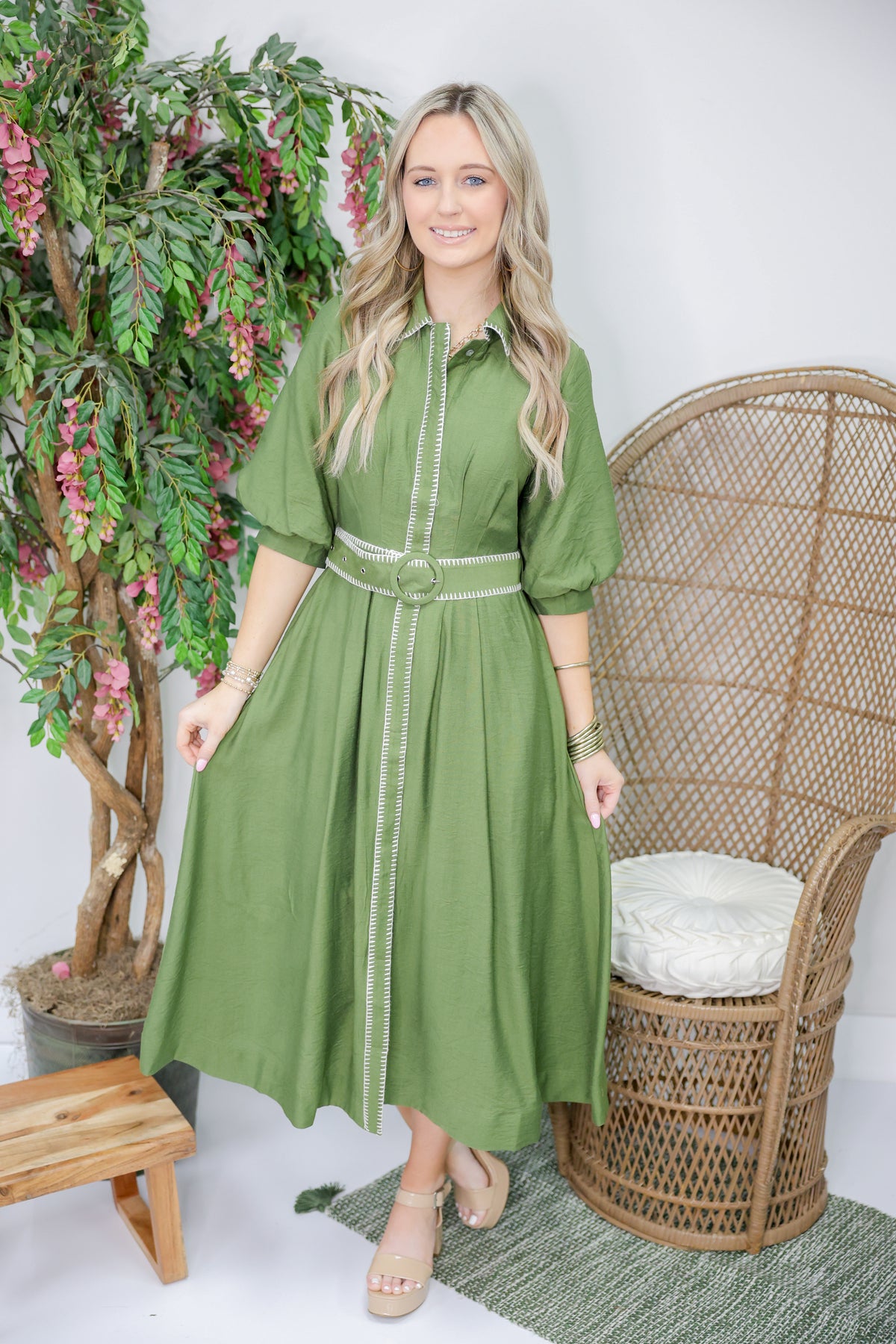 Step out in style with the Anne Solid Short Puff Sleeve Midi Dress in Olive. This playful piece features charming short puff sleeves and a flattering midi length, perfect for twirling through your day. Its solid camel color adds warmth and versatility, making it easy to dress up or down for any occasion. Comfortable yet chic, this dress brings a fun twist to your wardrobe essentials.