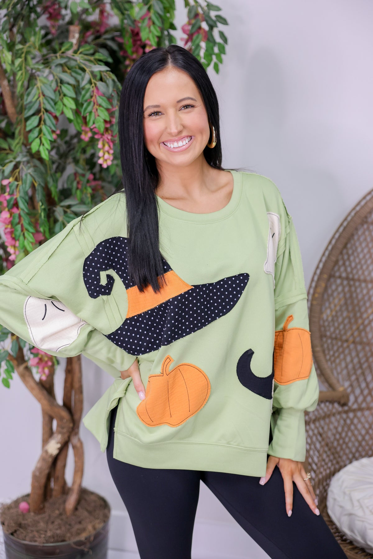 Halloween Theme Patchwork Oversized Sweatshirt "Light Olive"